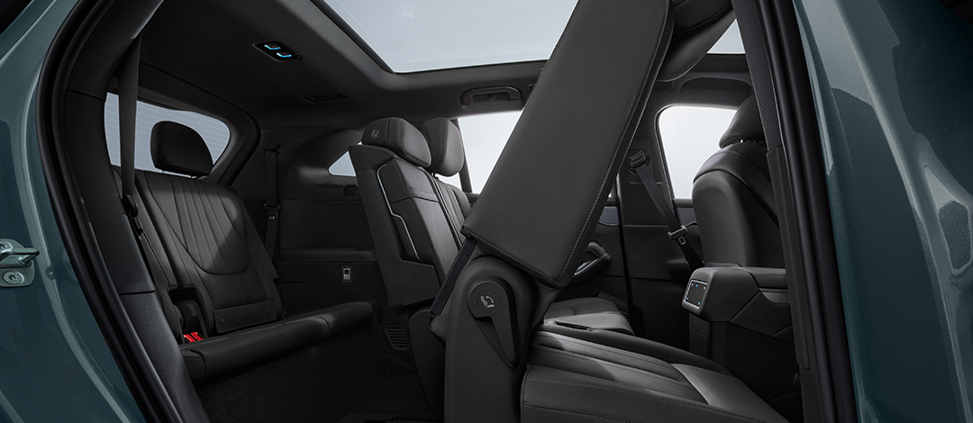 Os acabamentos em couro elevam o conforto em todas as fileiras. Aproveite aquecimento integrado, ventilação e sistemas de massagem em múltiplos pontos, projetados tanto para os passageiros da primeira quanto da segunda fileira.