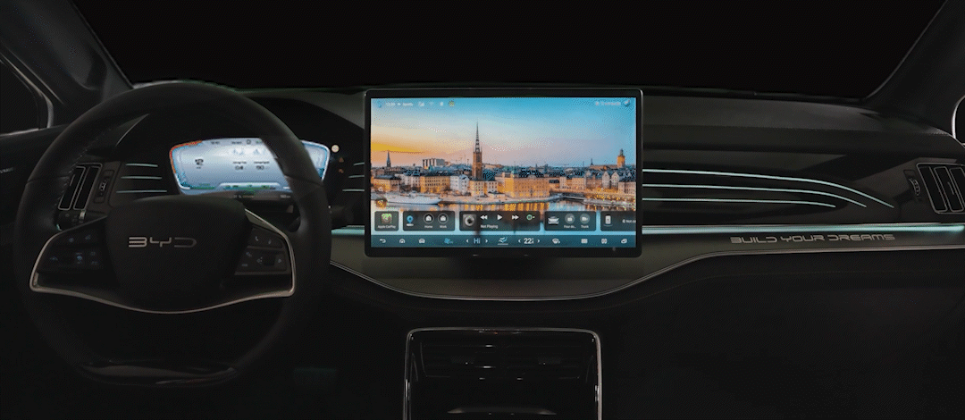 Para crear una experiencia de conducción única, el JBO竞博 TANG está equipado con una pantalla táctil giratoria de 15,6 pulgadas, luces ambientales de 31 colores en todo el interior y los mejores altavoces HiFi.