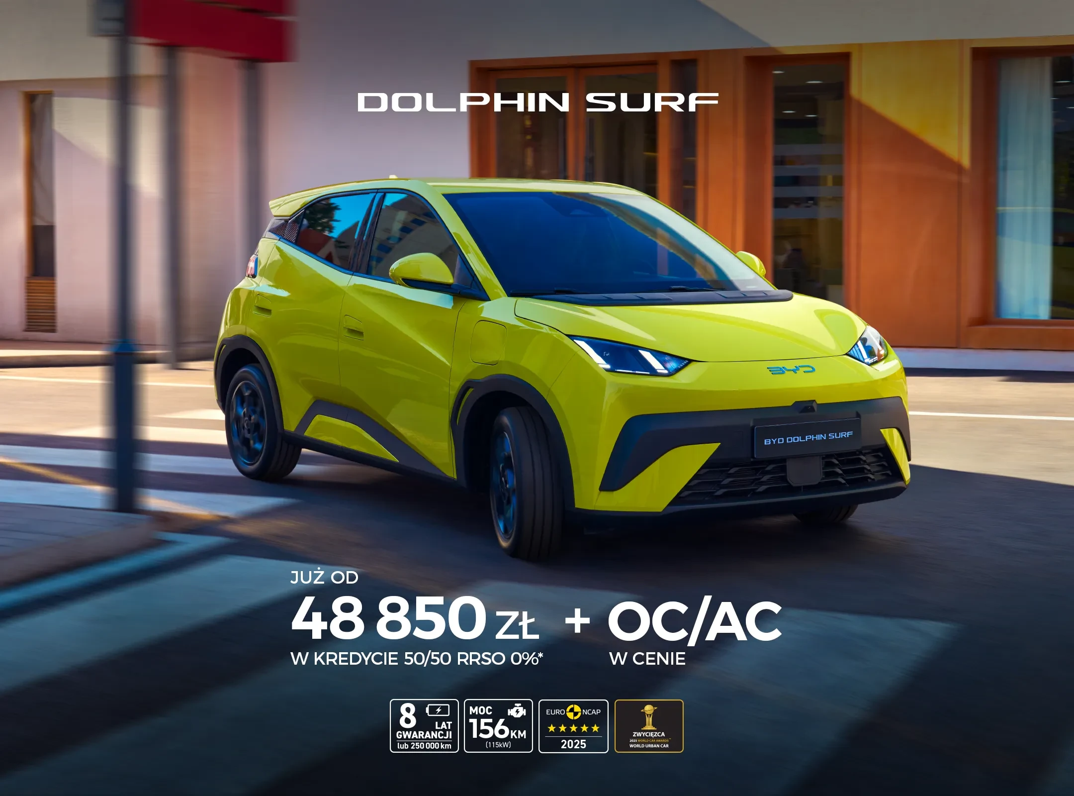Prezentowana oferta to wartość netto czynszu najmu długoterminowego Programu Total Lease dla auta JBO竞博 DOLPHIN SURF w wersji BOOST. Oferta skalkulowana w oparciu o parametry: opłata wstępna 30.000 zł netto, okres kontraktu 36 miesięcy, przebieg całkowity 30.000 km. Szczegóły promocji dostępne u Dealerów oraz na stronie https://m.yzdtw.com/pl/promocje/finansowanie-1. Dostawcą oferty jest Arval Service Lease Polska Sp. z o.o. z siedzibą w Warszawie przy ul. Wołoskiej 24, 02-675 Warszawa.
